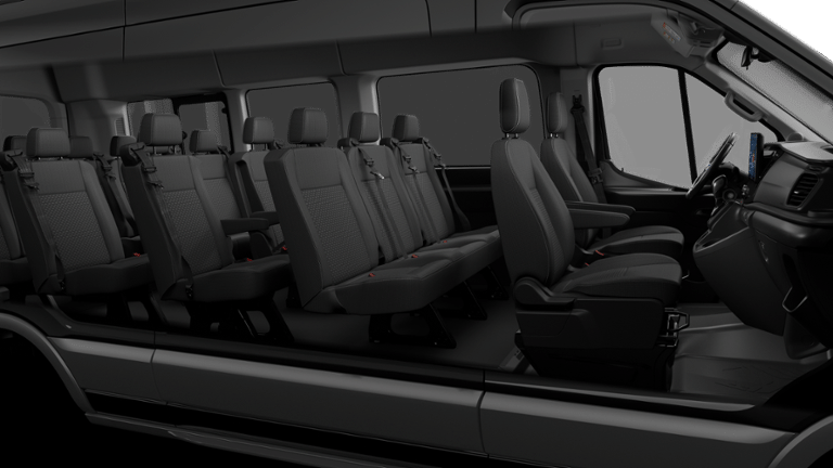 Black 2026 Ford Transit-350 XLT 15 PASSENGER DRW RWD 10-Speed Automatic with Overdrive EcoBoost 3.5L V6 GTDi DOHC 24V Twin Turbocharged Backup Camera, Satellite Radio, Dual Rear Wheel, 3.73 Limited-Slip Axle Ratio, ABS brakes, Cloth Front Bucket Seats, Dark Palazzo Gray Cloth Heated Bucket Seats, Electronic Stability Control, Ford Connectivity Package (1-Year Included), Illuminated entry, Low tire pressure warning, Order Code 302A, Radio: AM/FM Stereo with SiriusXM with 360L and HD, Remote keyless entry, SYNC 4, Traction control, Wheels: 16 Heavy-Duty Silver Steel with Silver Hubcaps.
